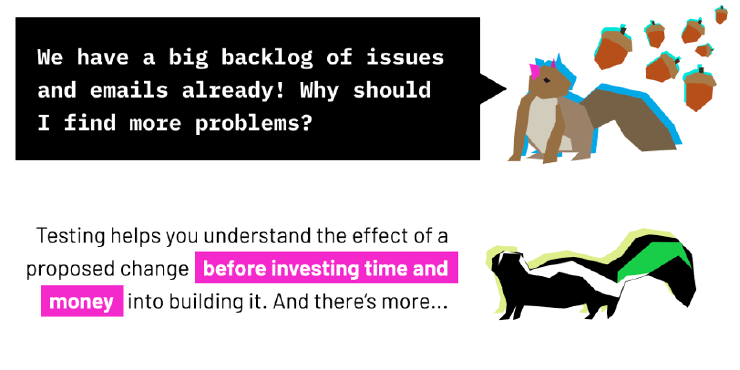 When speaking with developers we heard that user testing and usability testing is largely a mystery to the average developer. Many will have heard of the terms and often are enthusiastic about the opportunities and improvements that user testing and usability testing can give their OSS tools, but when it comes to trying to kick off the process by themselves they’re unsure where to start and what’s sustainable for a team without a designer on staff or a volunteer contributor. We created a series of written documents with copy-paste example templates for recruiting users, scripting testing sessions and gathering data, all kept on our micro site here: https://sprblm.github.io/devs-guide-to/a-dev-guide-to-usertesting/