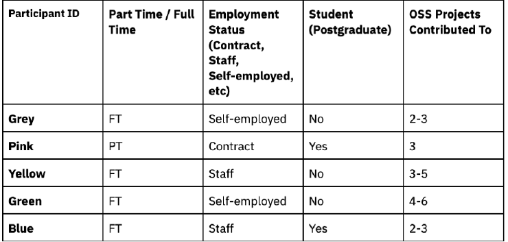 We then moved into sections where we collected accounts on what success means for designers and how that is defined in their relationships with other OSS contributors and the OSS project itself.