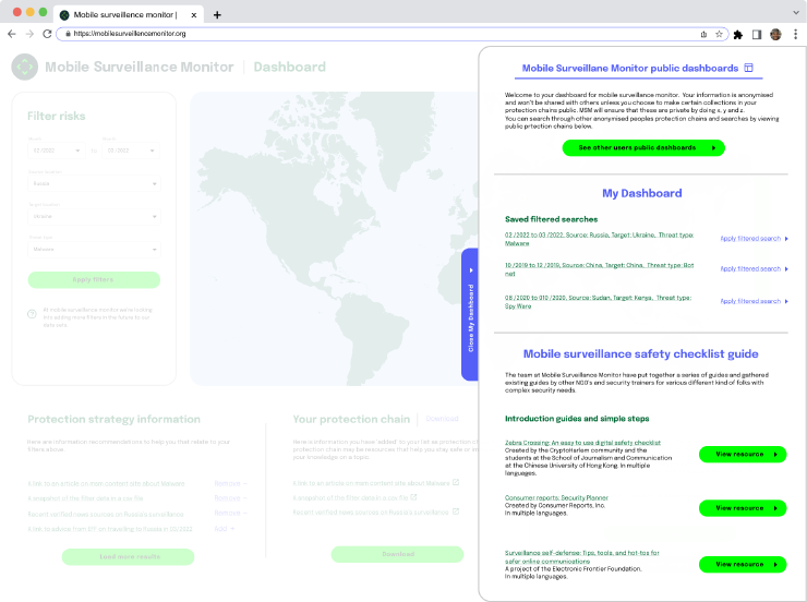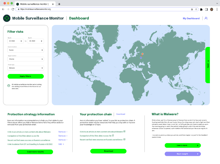 - With support from the Open Technology Fund, we supported Mobile Surveillance Monitor with human-centered research and design.
