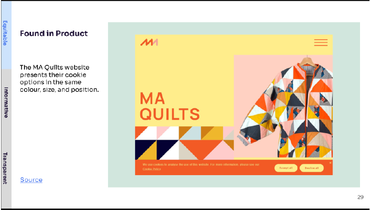 Image: the principle of equitability found in practice on the website for MA Quilts.